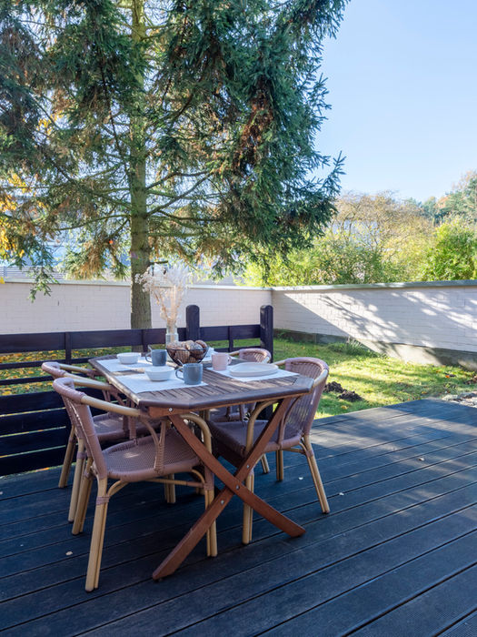 Dieses Einfamilienhaus ist Teil einer WEG, jedoch wirtschaftlich unabhängig. Diese Immobilie bietet Ihnen eine großzügige Gemeinschaftsfläche mit Grill auf der Vorderseite des Grundstücks. Auf der Rückseite erwartet Sie eine eigene Terrasse mit Gartengrundstück. Ein weiters Plus sind die direkt unterhalb der Wohnfläche liegende Garage und der großzügige Hobbyraum.